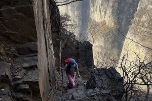 经济源鸡冠梯抵达奔月桥(此段都是临崖小道及天梯)