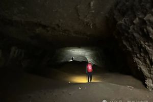 进洞千米后,变成一米高的石缝,长约二百米,内见水潭,其深莫测,至今无人穷终。