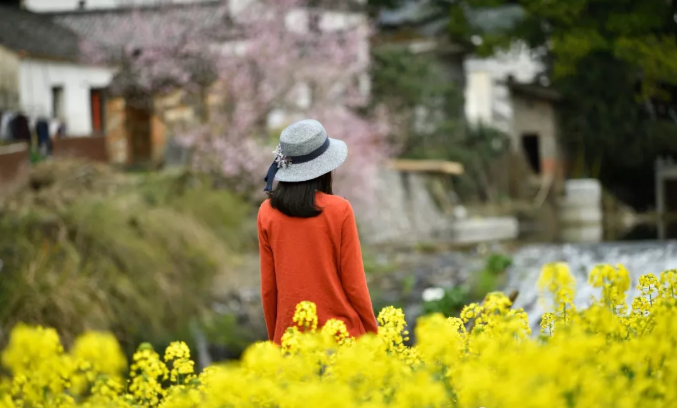 金黄的油菜花沿着江岸肆意绽放,像一串金色项链,将新安江装点得分外妖娆