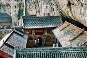 有一座悬于云端的古寺立于百丈悬崖的凹处