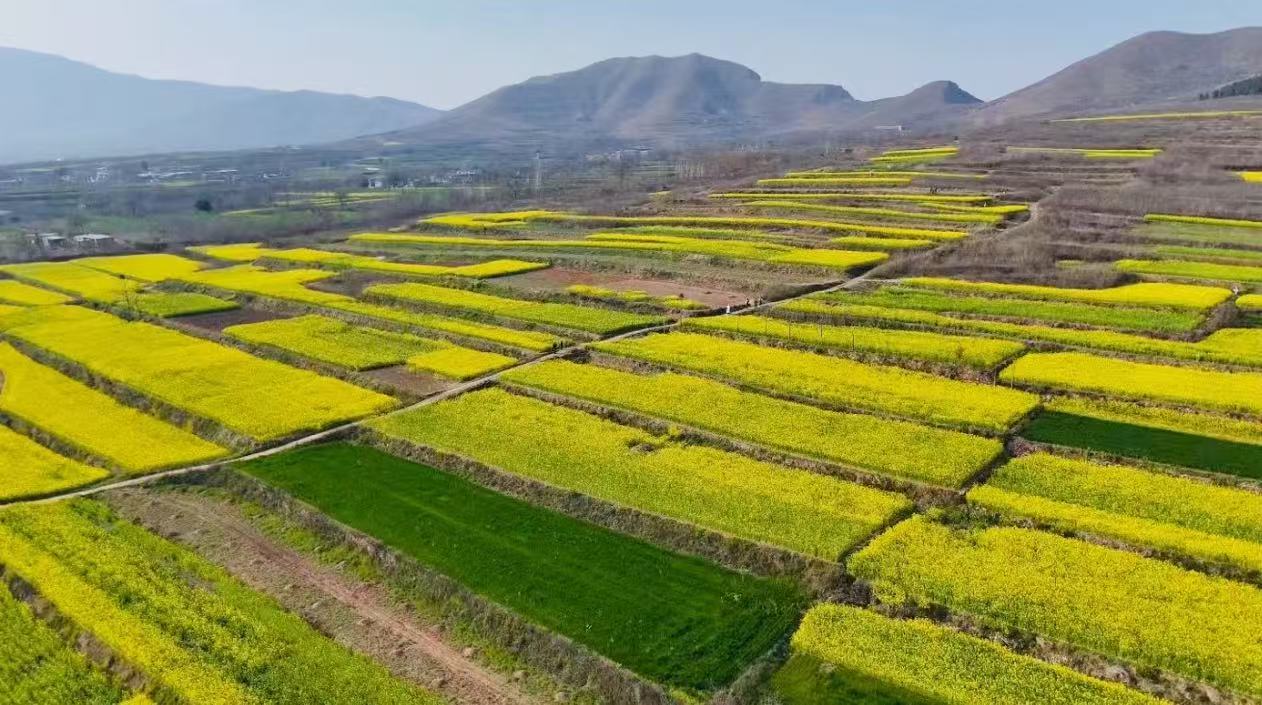金黄花海顺着山势层层叠叠而来