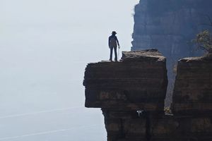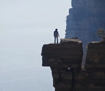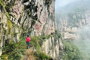 上方是壁立千仞的陡崖,下方是万丈深渊的绝壁