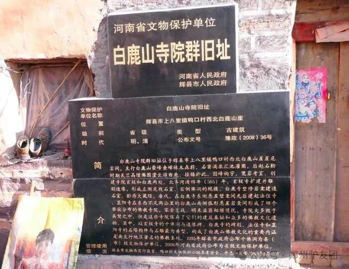 白鹿山寺院群旧址位于辉县市上八里镇鸭口村西北白鹿山崖危岩间
